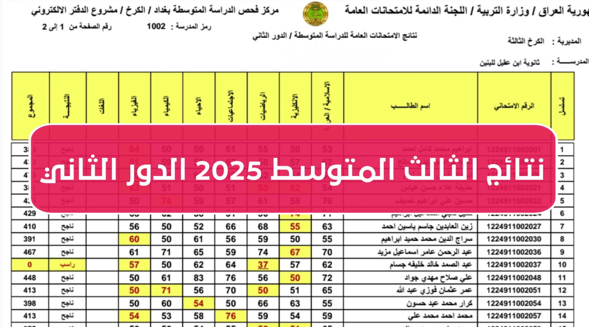 نتائج الثالث المتوسط 2025 الدور الثاني موقع نتائجنا