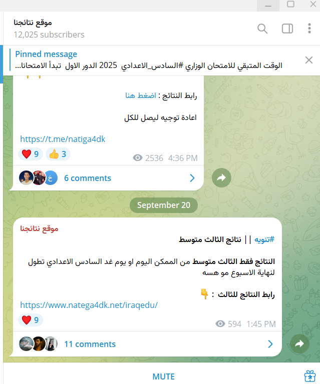 اعزائي طلاب وطالبات الصف الثالث المتوسط في العراق ، نتابع معكم كيفية الحصول علي نتائج الثالث المتوسط الدور الثاني للعام الدراسي 2025 وذلك في جميع الولايات العراقية ، حيث انتهت عملية تصحيح اوراق الأجابات في بعض المواد ، وتجري عملية التصحيح في باقي المحافظات التي لم تصدر بها النتيجة ، وقد نشر موقع نتائجنا منشور عبر الصفحة الشخصية الخاصة بة علي التليجرام يوضح فية علي ان النتائج سوف يتم رفعها اليوم او غدا ، اما بالنسبة لنتائج الصف السادس الدور الثاني سوف تكون مع نهاية الاسبوع الجاري ، ولذلك يسعي كل طالب من طلاب الثالث المتوسط في متابعة اخر اخبار النتيجة للحصول عليها فور صدورها.