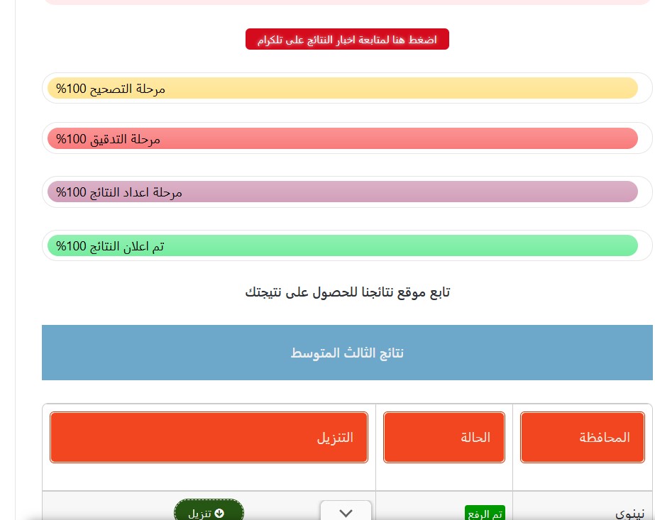 - ثم الضغط علي نتائج الثالث المتوسط.